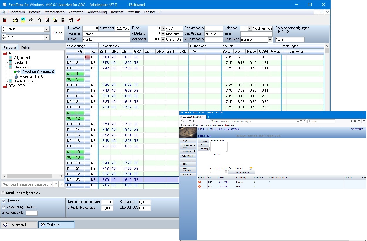 Stempeln,Urlaubsanträge, Genehmigungsverfahren im Webbrowser  On Premise Lösung. Das gesamte System läuft