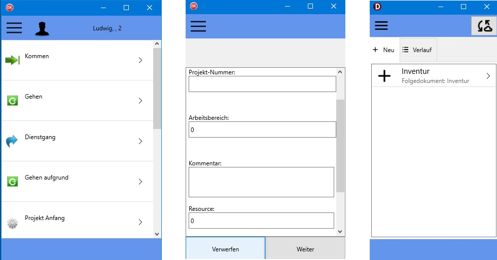 Die optionale App bietet die Möglichkeit Online oder Offline Stempelungen und selbst erstellbare Dokumente von Mitarbeitenden oder Gruppen zu erfassen.