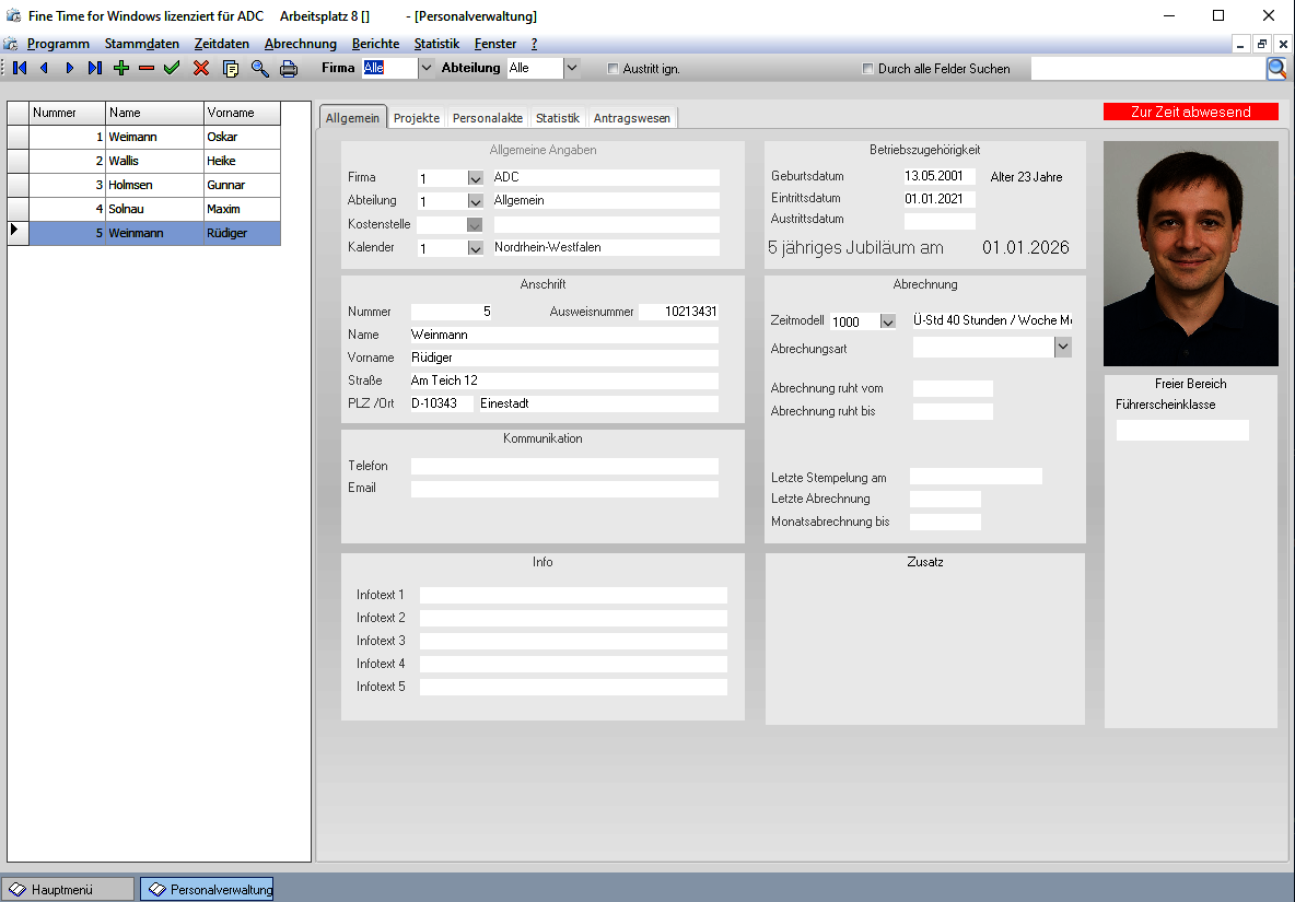 Die Personalverwaltung führt wesentliche Information zum Mitarbeiter zusammen.